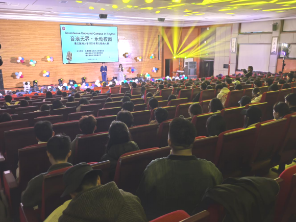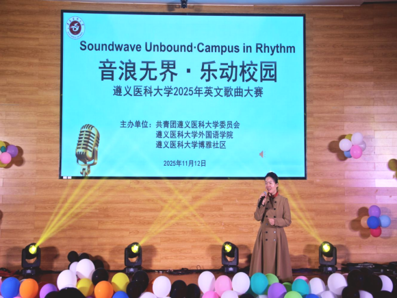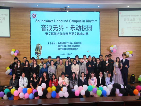 为创新英语学习形式、营造沉浸式学习氛围,激发学生英语学习兴趣与表达热情,2025年11月12日晚,由学校团委、博雅社区与yL23411永利、学院关工委联合主办的永利yl23411官网2025年“音浪无界·乐动校园”英文歌曲大赛决赛在道德讲堂精彩上演。遵义师范学院音乐与舞蹈学院副教授夏颜、遵义职业技术学院李国鸿,学校yL23411永利院长王梅、学校党委统战部副部长李菲、yL23411永利综合英语教研室主任何永娇、外籍教师Hannah、Lisa担任评委,以专业视角为赛事把关。来自全校各学院的19支代表队同台竞技,用歌声展现英语魅力与青春风采。