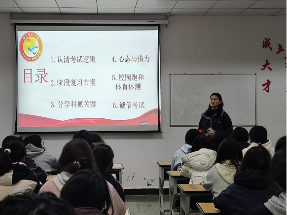 2025年11月3日19:00,学院在综合实验楼专业七、专业九教室开展导学助学督学活动。英语专业2024级校级“三好学生”“优秀学生干部”、入党积极分子罗定钊、袁紫诺、张玉洁、刘广艳四位同学,以“先锋榜样”身份深入2025级新生班级分享。她们既从考试逻辑切入,详解高效备考、重点抓取、学娱平衡的实用方法,指导新生提前规划复习、重视平时积累;更以入党积极分子的责任担当,强调“诚信考试、杜绝作弊”的纪律要求,传递“踏实治学、严于律己”的价值理念。互动环节中,四位同学耐心解答新生疑问,现场氛围热烈,让新生在获取方法的同时,更树立了正确的学习观与规矩意识。